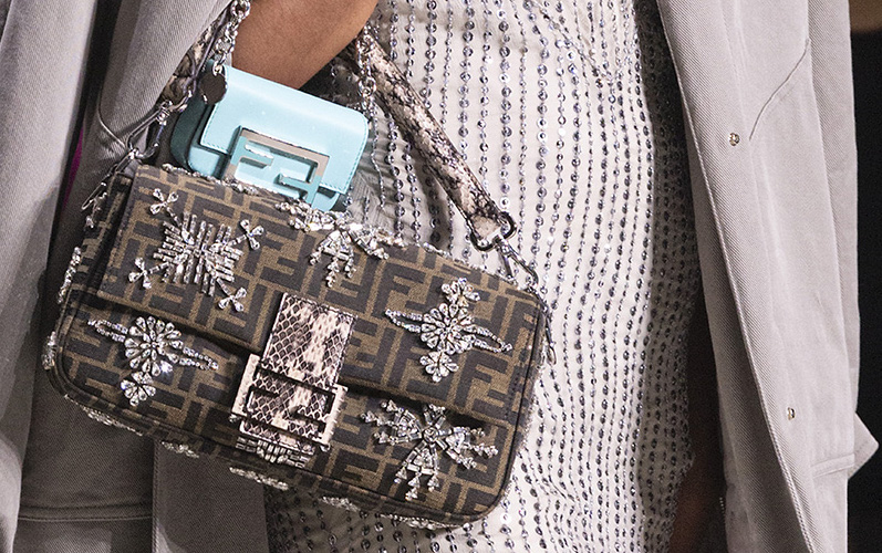 “No es un bolso, es una Baguette”, declaró Sarah Jessica Parker en Sex and the City, y la apoteosis pop de la Baguette fue completa. La frase también aparece en el interior de cada uno de sus bolsos de cápsula. Diseñados junto a Silvia Venturini Fendi, bordados de lentejuelas degradadas con una paleta de púrpura, wasabi, rosa bebé o azul suave, los bolsos están provistos de cuatro hebillas intercambiables para adaptarlas al estado de ánimo del usuario.