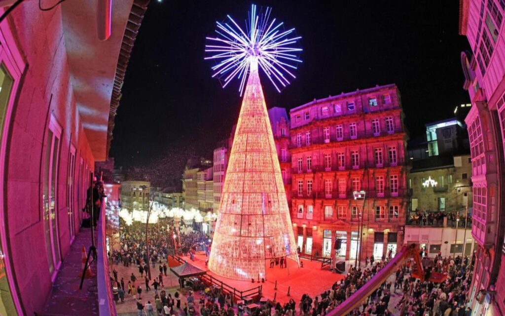 Un año más, Vigo obtiene la medalla de oro y el título de ciudad más navideña del país. El ambiente de Vigo es inigualable: desde los espectáculos de luces y sonido, hasta las actividades navideñas y el ambiente que, cada año, atrae a miles de visitantes. En 2024 se han alumbrado más de 400 calles con 11,5 millones de luces leds y cuenta con uno de los mayores árboles de Navidad, coronado por una estrella gigante. Como novedad, se ha incorporado un bosque de Navidad con varios árboles luminosos de 8 metros de altura que acompañan al enorme abeto principal. En octubre comenzaron los trabajos de instalación de la iluminación, así como de los demás ornamentos. Y es que, su inauguración genera mucha expectación entre la población -este año con un sentido homenaje a los afectados por la DANA de Valencia-.