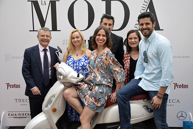 Isabel Picou y Álvaro Mejide, de Clarins, con el equipo de LA MODA EN LAS CALLES.