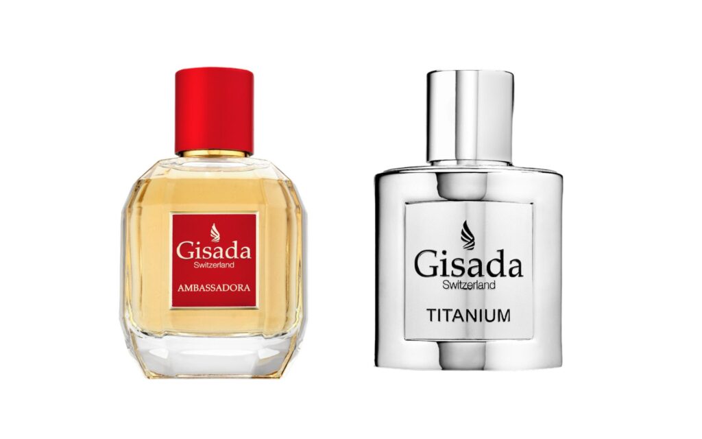 Y para él: Titanium, la fragancia amaderada y masculina de Gisada. Con unas notas de cabeza de Pimienta rosa, Artemisia, Salvia y Cardamomo. Y unas notas de corazón de Lavanda, Cedro, Cuero, Canela y Sándalo.