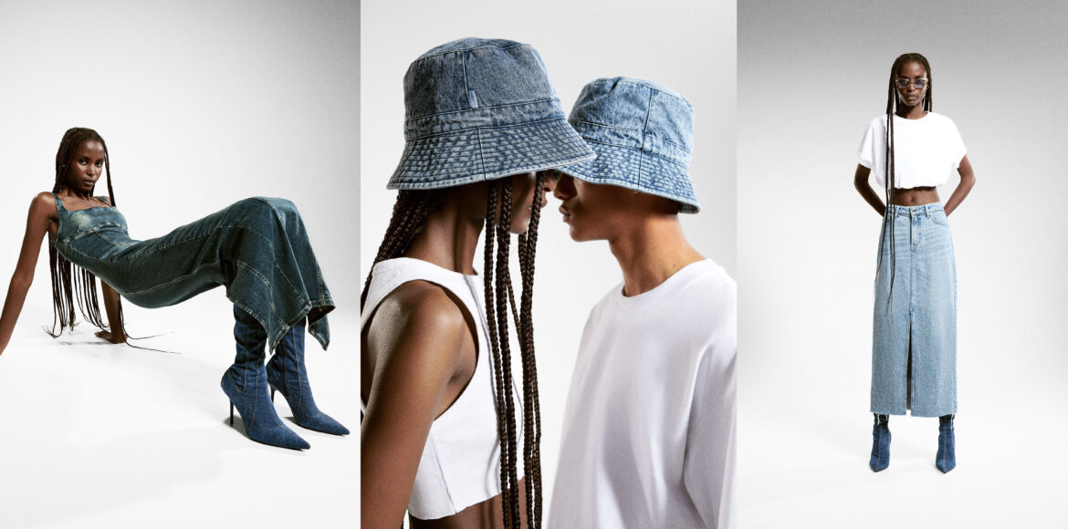 Con DENIM DYELAND, la marca hace un viaje al pasado para rescatar prendas tan icónicas como la faldas vaqueras de los 90. Esta nueva colección pone a nuestro alcance la versión más trendy de este lavado denim, incluyendo versiones mejoradas del clásico look full blue, tanto con prendas en denim como otras con un punto azul con efecto lavado que emula el tejido. Las prendas clave son el maxi vestido en denim, el conjunto de falda midi y chaqueta con cremallera, el crop top con puños, el corsé y los vaqueros balloon fit.
