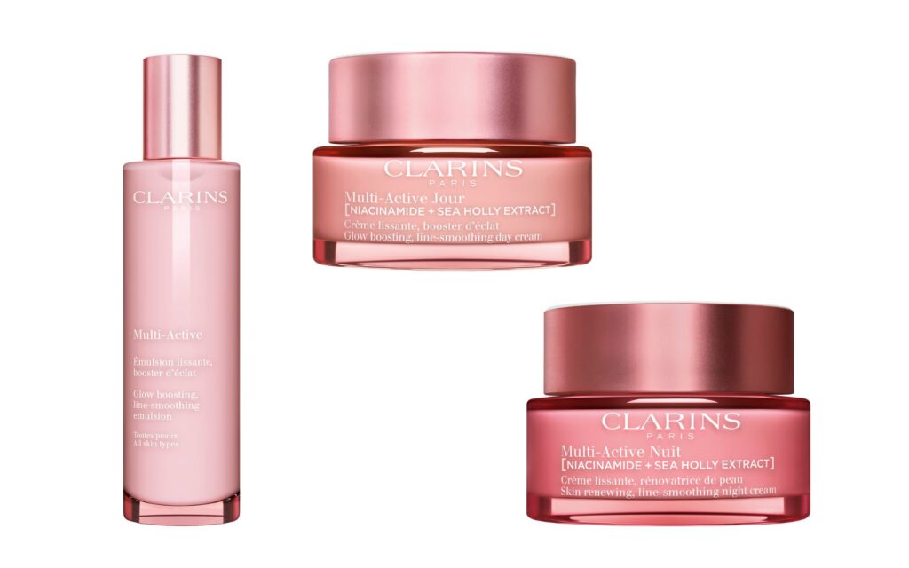 Los Laboratorios Clarins, para combatir los efectos que el estrés genera en la piel, crean para la NUEVA Multi-Activa el [Skin Charger Complex] que permite a la piel conservar su resistencia y su nivel de energía. Está compuesto por niacinamida, también conocida como Vitamina B3, que alisa las primeras arrugas y refuerza la textura de la piel; extracto de cardo marino bío que favorece la síntesis de elastina evitando el adelgazamiento de la piel y mejora su tonicidad y flexibilidad; extracto de madroño bio para reducir el tamaño de los poros y homogeneizar la piel y betaína, que, gracias a su acción hidratante, rellena las arrugas al instante.